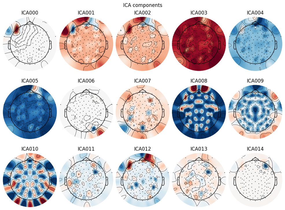 ica.exclude = [0, 6, 14] # Example: components 0 and 1 are eye blinks and heartbeats